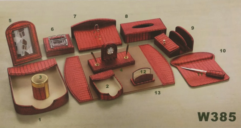 Desk Set, 13 ComponentDesk Set, 13 Components, Leather, Reds, Leather, Red